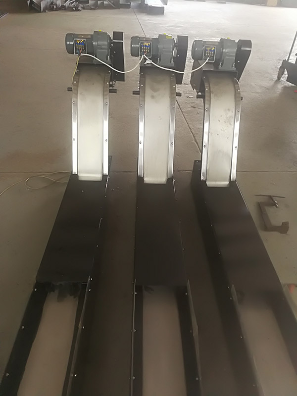 1、磁性排屑機是利用永磁材料所產生的強磁場的磁力,將切屑吸附在排屑機的工作磁板上,